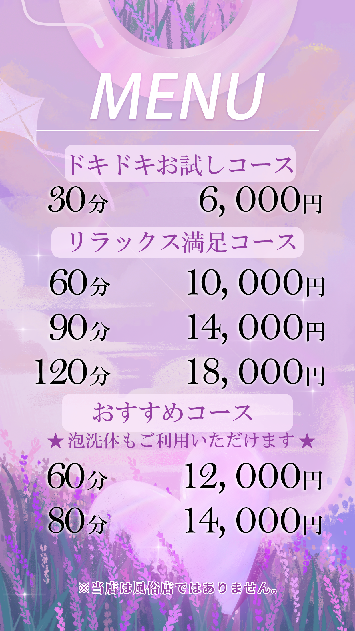 一度お店で可愛い子を覗いていってください当店はお客様に楽しんでマッサージしていただくことを第一に接客しております。みなさんとの繋がりや絆を大事に出来るお店を作りたくて優しさ・温かさ・心地よさをセラピストに癒しと名付けました。視覚・聴覚・嗅覚・味覚・触覚・・・五感全てに癒しを感じてもらえるように空間・照明・音楽・・・そしてマッサージを是非とも体感してみてください。ぜひ、一度お店で可愛い子を覗いていってくださいね!